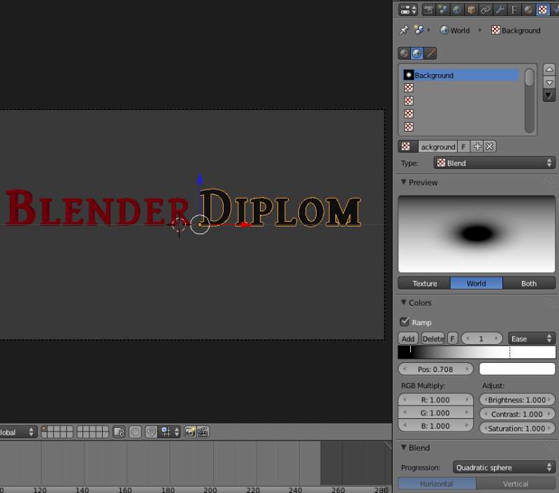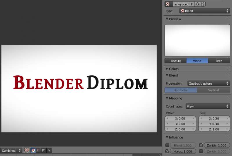 Next add some simple material to the text. Set the Diffuse Intensity to 1 and the Specular Intensity to 0. For the red of the BlenderDiplom logo I used a value of '9C000D' (Hex) and for the dark grey '161616':