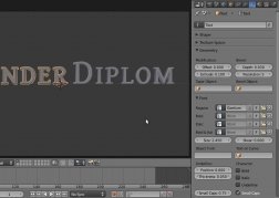 Now it's time to edit the text. Select it and hit Tab to go into Edit Mode. Here you can edit the text just like in any text editor. When finished, hit Tab again to go back to Object Mode. For the BlenderDiplom logo I created two text objects and placed them left and right from the center. Of course the default font looks dull and you might want to change spacing, 3D extrusion and various other aspects, too. You can do so in the 'Object Data' of the text which you can find in the Properties Panel under the tab wifh the F-symbol.